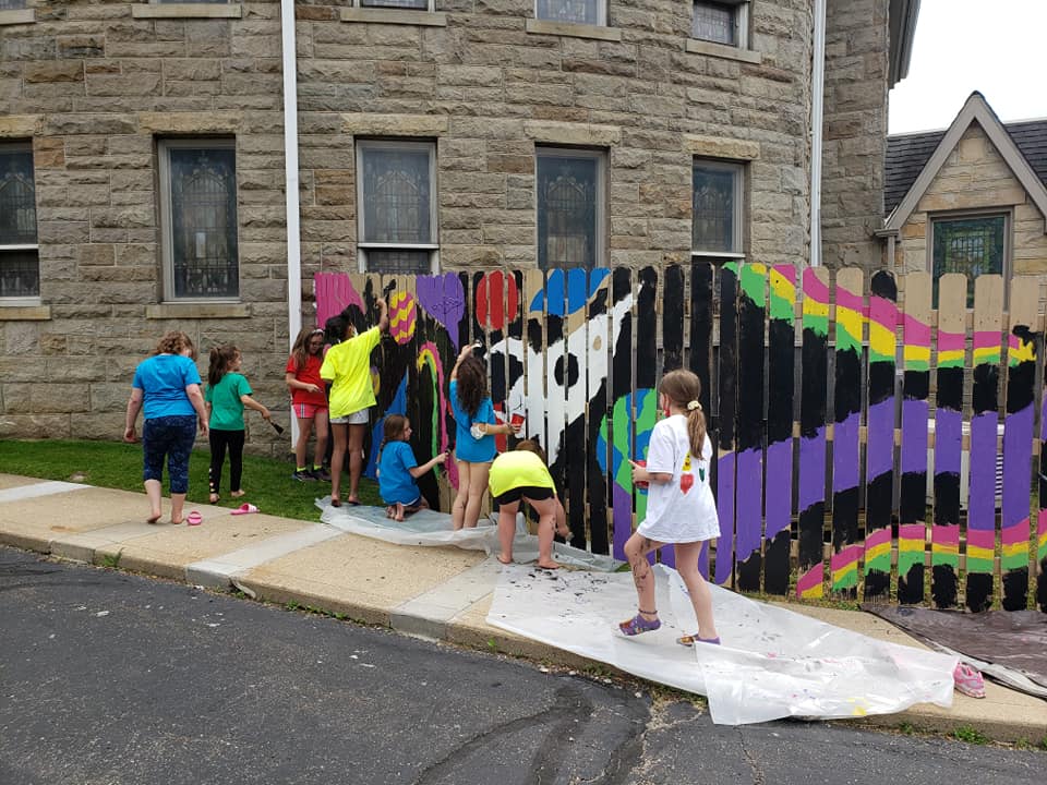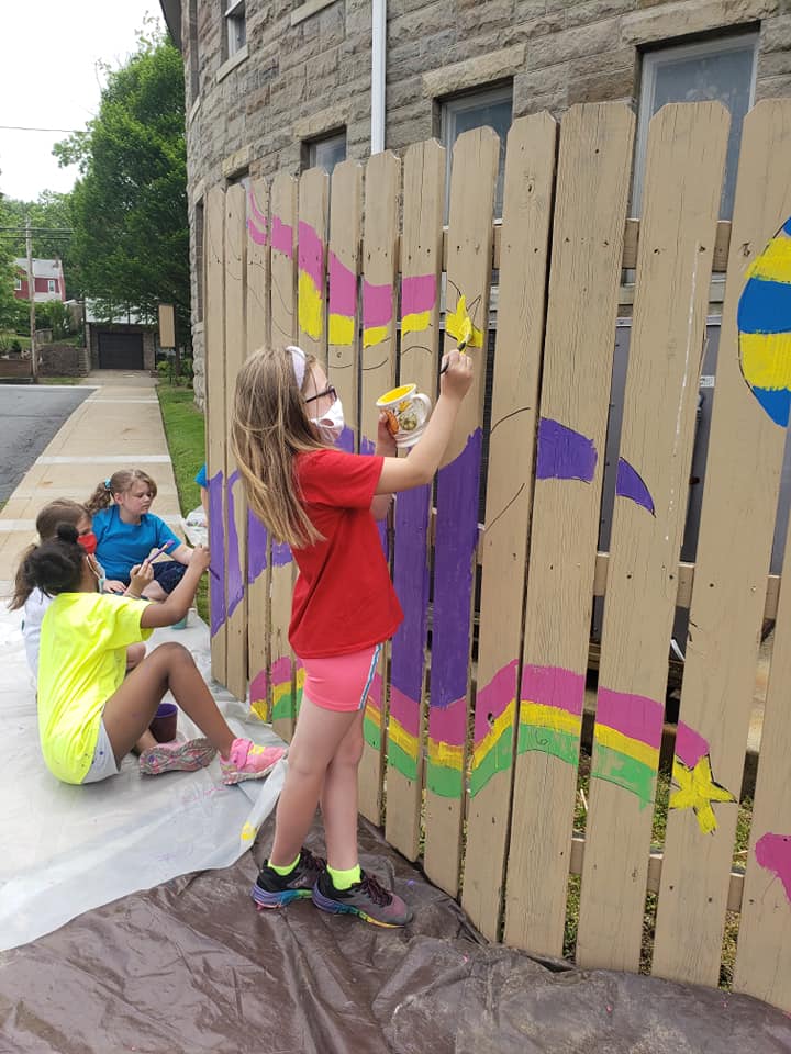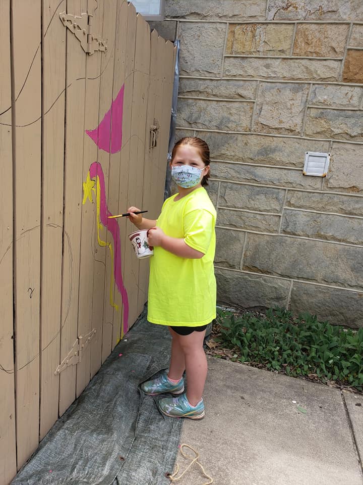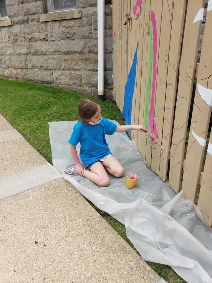 The girls spent nearly three hours on a Saturday working on their mural, each taking a turn with their color and eventually helping with the background.