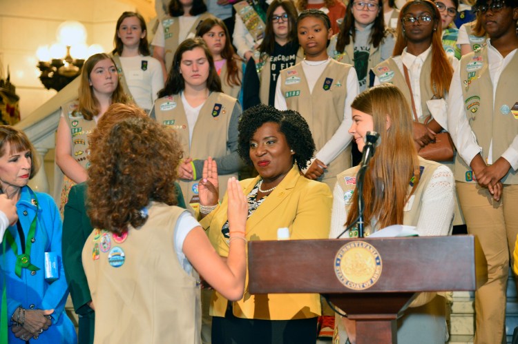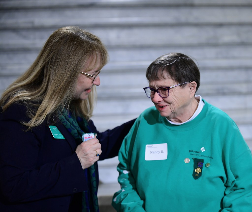 Over 70 Girl Scouts from the three Girl Scout councils in the state—Girl Scouts Western Pennsylvania, Girl Scouts of Eastern Pennsylvania, and Girl Scouts in the Heart of Pennsylvania—participated in the event and invited female members of the Pennsylvania General Assembly to join Troop PA, an honorary Girl Scout troop. Participating Girl Scouts in our council were from counties including Allegheny, Butler, Indiana, and Lawrence.