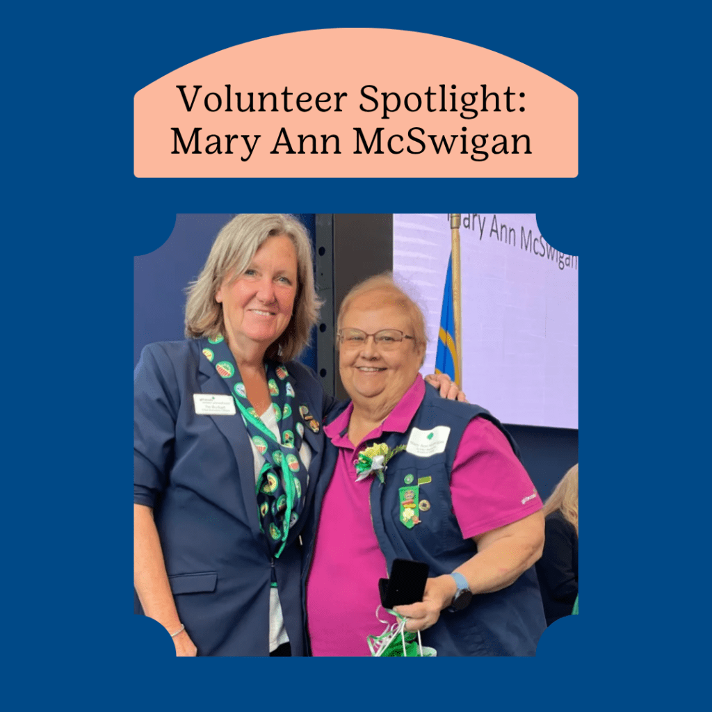For Mary Ann McSwigan, a commitment to Girl Scouts is something that lasts a lifetime. With both volunteer experience and her own time as a Girl Scout combined, Mary Ann has been involved with Girl Scouts for 50 years.